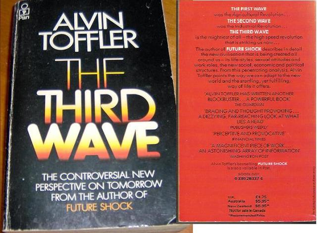 Information ageAccording to Alvin Toffler, The Third Wave is generally what we refer to as the Information Age. It arose as a result of advances in computer technology and the advent of the Internet. We all have a pretty good idea of what this is about. In 1980 when he published his book, The Third Wave, computers were for the most part bulky mainframe units. Of course, the capacities, capabilities, and sizes have vastly changed since then.