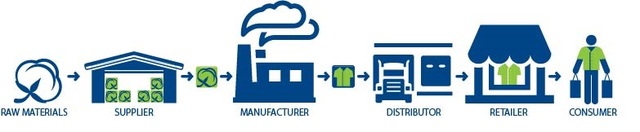 Conjunto de tres o más compañías directamente relacionadas por uno o más pasos hacia arriba o hacia abajo del flujo de productos, servicios, financiamiento, e información sobre una fuente al consumidor.