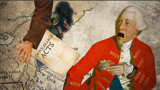 Laws passed specifically to punish Boston for being the center of the uprising. They revoked some of the colonial rights in the Massachusetts charter, took away town meetings, forced trials in Britain with "guilty until proven innocent," closed the Boston port, allowed soldiers to be lodged in private homes, and forced Boston to repay Britain for damages. Also known to the British as the Coercive Acts.