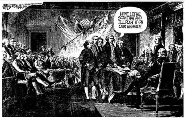 The Declaration of Independence is a document created, while in the midst of war with Great Britain, stating the the 13 colonies would now become independent states, being referred to as the United States of America. The document was written by Thomas Jefferson, John Adams, and Benjamin Franklin. This document led to independence from Great Britain and a start to the U.S.A.'s own independent living. It also led to the creating of the executive and judicial branches of government.