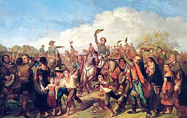 Depois de três anos de guerra o Brasil desistiu e entregou a terra para Argentina. Legenda da imagem: