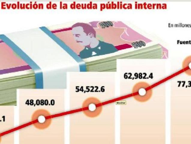 Para este año la deuda pública se incrementó un poco más de seis mil millones de lempiras, pues pasó de 48,080 millones, reportados en 2011, a 54,522 en 2012.