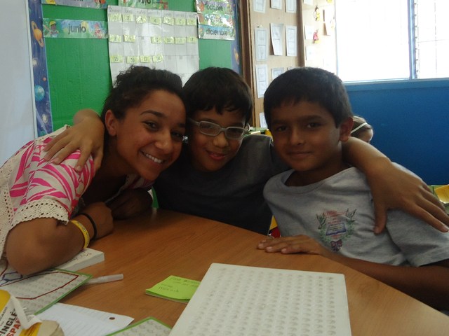 This is the only male we had on the group doing spanish work on the board. Our class rooms are at least three times smaller than the classroom we are sitting in now.