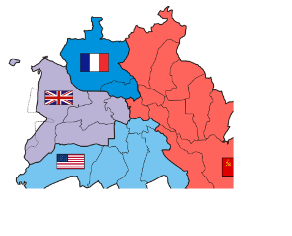 Mann konnte nie mehr auf dem Land durch nach Deutschland fahren. Die USSR versuchte übernehmen die Kontrolle von die Vereingten Staaten, das Frankreich, und das Großbritannien.