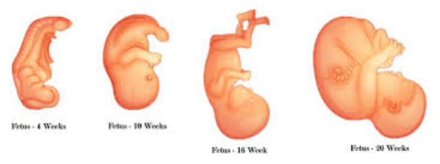 The fetus starts to move. the face begin to look like a baby face.