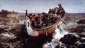 Radisson and des Groseilliers sail to New England in search of investors for their trading expeditions.