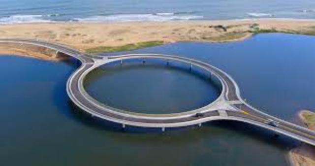 Le Laguna Garzon Bridge créé par les architectes new-yorkais de Rafael Viñoly Architects est un pont circulaire sur pilotis dont chaque voie de circulation utilise un demi-cercle opposé et est entourée de passages piétons qui font le tour pour permettre aux gens d’admirer la vue.