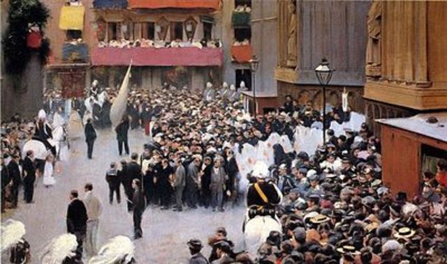 La setmana tràgica fou una revolta social què va passar a Barcelona al 1909. . La setmana tràgica es va orginar en gran part per motius militars perquè la gent més rica podia pagar uns diners per tal de no anar a la guerra a l' Àfrica, i també l'augment de les ideologies Lerrouxistes va fer què la gent acusés també a l' església d'estar sempre a favor dels poderosos, això provocà què molta gent sigués anticlerical això va fer què es cremessin molts convents i esglésises durant aquest període.