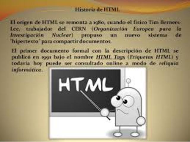 formal con la descripción de HTML se publicó en 1991 bajo el nombre HTML Tags (Etiquetas HTML) y todavía hoy puede ser consultado online a modo de reliquia informática.