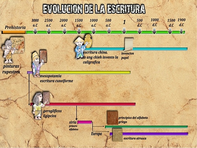 Las primeras técnicas de escritura se remontan al cuarto milenio a. C. Surgió en Egipto, Mesopotamia y China. El sistema creado en Oriente Medio y Egipto se extendió rápidamente a las áreas culturales cercanas y es el origen de la mayoría de las escrituras del mundo.