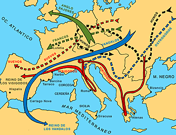 en el 457, La caída del Imperio romano de Occidente, fue el período de declive del Imperio romano de Occidente en que perdió la autoridad de ejercer su dominio y su vasto territorio fue dividido en numerosas entidades políticas sucesoras.
