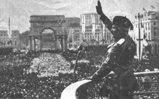 Nell'estate del 1922 Mussolini per conquistare il potere ideò una marcia su Roma, Le squadre fasciste distinte dalle camicie nere si diressero a Roma arrivando il 28 ottobre 1922. Ma in realtà questa iniziativa non doveva essere mezzo per conquistare direttamente il potere ma solo un arma di ricatto e di pressione sulle istruzioni. Per fermare le camicie nere Luigi Facta proclamò lo stato d'assedio ma il re Vittorio Emanuele 3° non firmò e convocò Mussolini