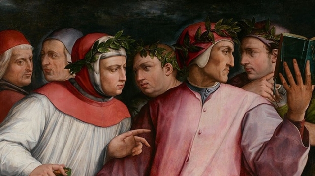 Dante Alighieri (1265-1321), poeta, scrittore e politico, è considerato il padre della lingua italiana. Scrive la "Divina Commedia" (1321), nella quale narra di un grande viaggio ultraterreno con intenti educativi.