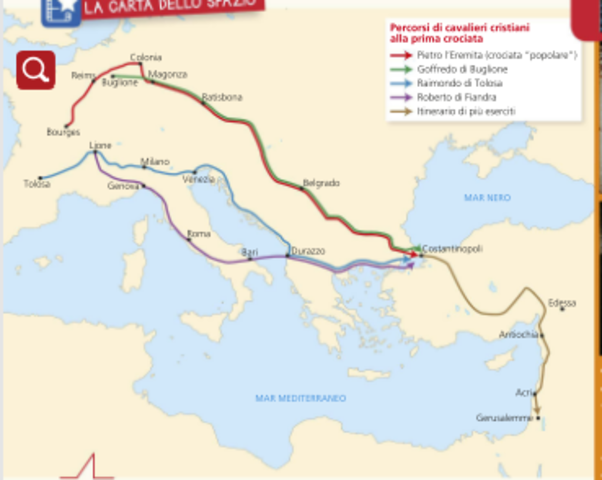 L'EUROPA CRISTIANA SI ESPANDE By sara scaringella 1095 CONCILIO DI CLEMONT 1096 INIZIO DELLA PRIMA CROCIATA 1099 CONQUISTA CROCIATA DI GERUSALEMME 1187 CONQUISTA MUSULMANA DI GERUSALEMME Period: 1204 to 1261 IMPERO LATINO D'ORIENTE 1212 VITTORIA CRISTIANA SUI MORI A LAS NAVAS DE TOLOSA 1291 CADE SAN GIOVANNI D'ACRI, ULTIMA FORTEZZA CRISTIANA