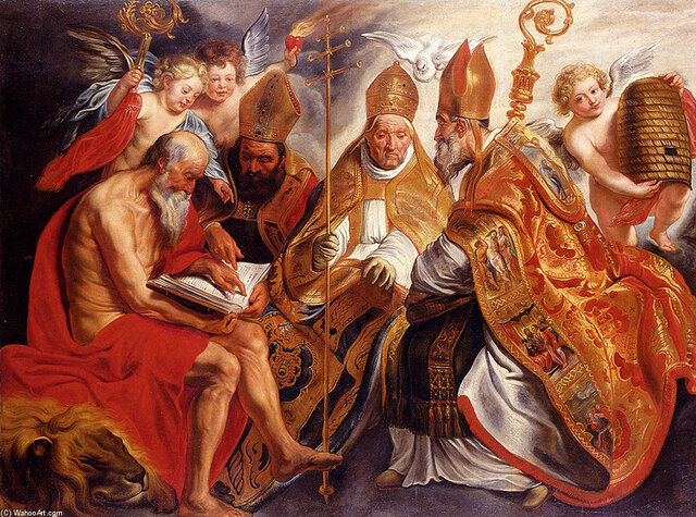 Jerónimo, pidió el bautismo hacia 366. Gran conocedor de Cicerón, dominaba la retórica clásica. Además tenía un amplio manejo del griego y se empeñó en el hebreo al llegar a Palestina. Por encargo de Dámaso (382) corrige la versión latina existente del NT y en los '90 comenzó a traducir el AT del hebreo. Entre sus obras más conocidas encontramos, además, sus Cartas o Epístolas y sus famosos Comentarios de exégesis bíblica.
