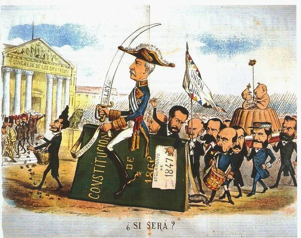 Dins l'etapa del Sexenni Revolucionari (1868-1874), la primera República (1873-1874) va ser proclamada com a solució d'urgència davant del buit de poder i, enfront el desprestigi de la monarquia borbònica. El curt període de la República, va finalitzar amb la dictadura de Serrano, és a dir, amb l'ocupació del general Pavía a les Corts qui, amb el suport de l’exèrcit, va posar punt i final a aquesta fase.