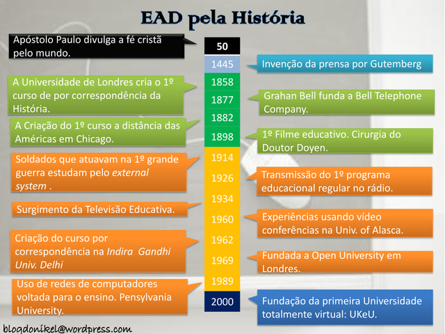 Criada a Secretaria de Educação a Distância pelo MEC, oficializando o surgimento da Educaçao a Distância no Brasil pela LDB 9394/96.