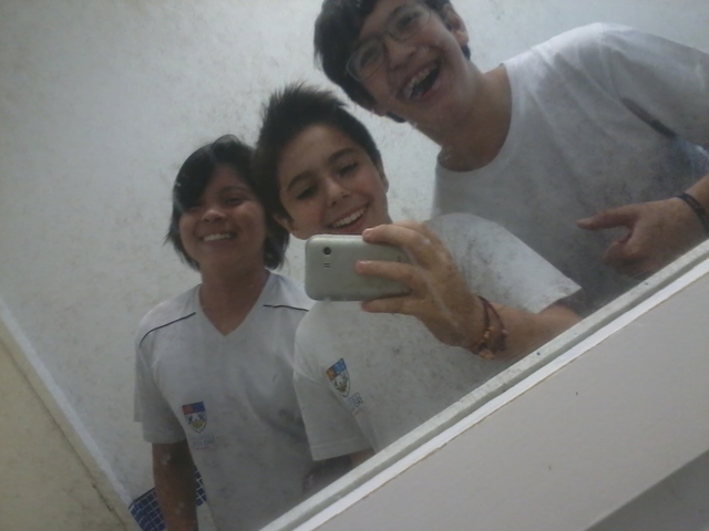 Nesse dia eu tirei uma foto com meus amigos do colégio antigo e foi na parte de fora da escola.