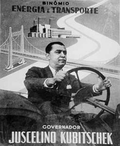 Com um total de 36% dos votos, JK toma posse do Governo no cual modificou a vida dos brasileiros. Primeiramente ele transferiu a capital do pais para o centro. Sua meta primordial era trazer a prosperidade do litoral para o centro da país.