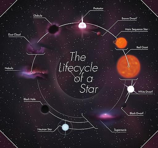 When this cloud collapses, the material at the center developed a very high temperature, this proceses creates a protostar, this is the hot core at the center of the collapsing cloud that will one day become a star.