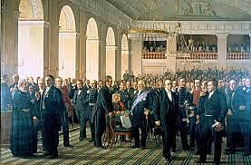 Det parlamentariske princip bliver indført; afslutningen på forfatningskampen.