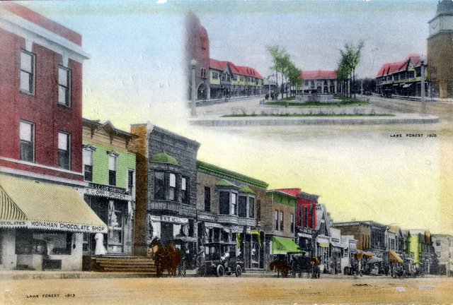The first business house in Lake Forest, the Wright store, is built on the northeast corner of Deerpath and McKinley.